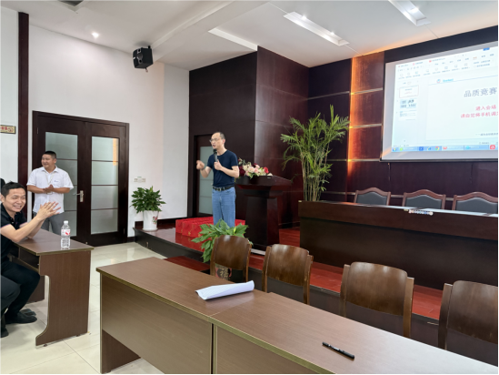 生產部門的主管們也積極參與到此次活動中,為活動增添了更多活力。會議初始,品質部金課長詳細地為大家講解了本次活動規則,5 人一小組的團隊競賽模式,瞬間點燃了大家的團隊協作熱情。