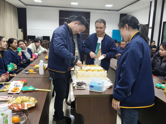 主管與人力資源部的小伙伴們化身“幸福傳遞官”,小心翼翼地為每一位壽星分發(fā)蛋糕,甜糯的口感在舌尖化開,正如這份來自大家庭的溫暖,浸潤心田。何主任也為壽星們送上了最真摯的祝福,話語間滿是對大家辛勤付出的肯定與未來的期許,讓在場的每一個人都倍感溫暖。